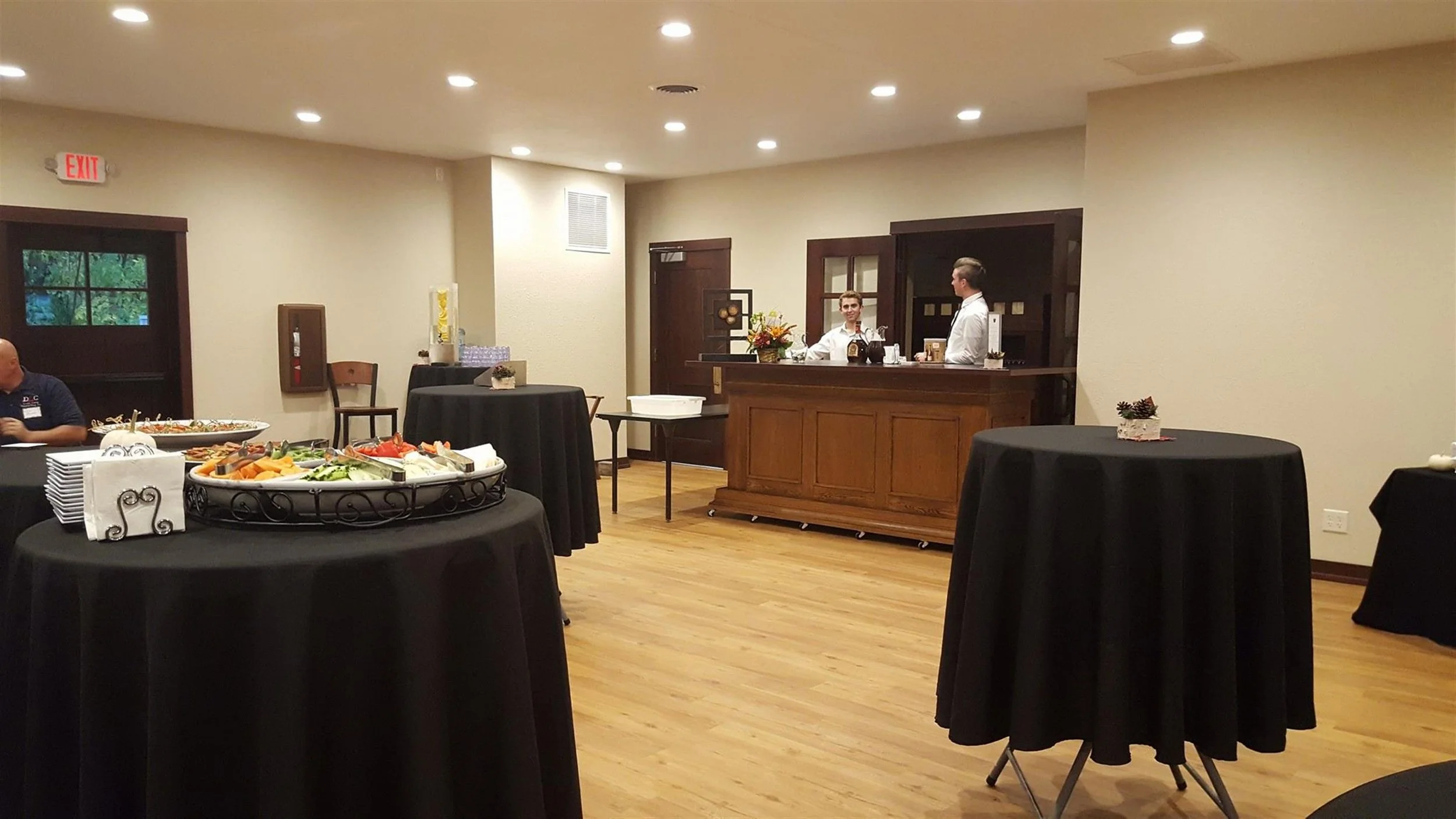 A presentation area and serving area can be incorporated. A "living room" and board-game room available for smaller gatherings or to expand the available space for the large-space gathering. Cash bar options available.